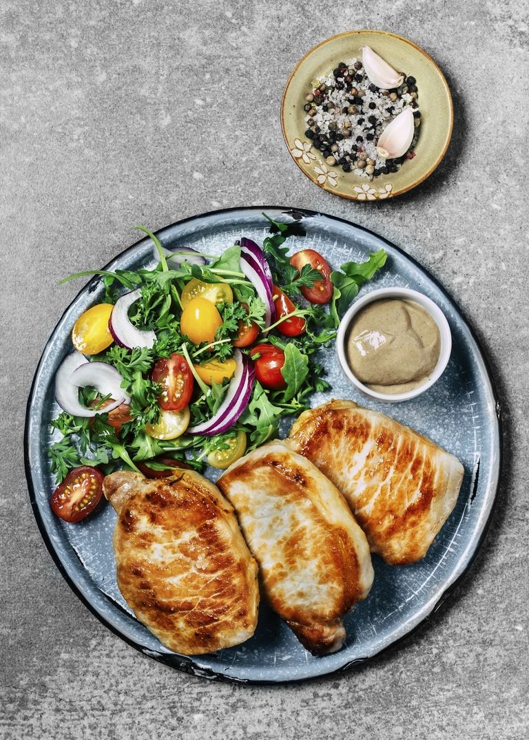 Esta es la razón por la cual las fuentes de proteínas más magras como la pechuga de pollo, el pescado blanco y los productos lácteos bajos en grasa tienen menos calorías que las alternativas como el tocino y las hamburguesas. El yogur griego, el queso y el requesón también son opciones inteligentes.