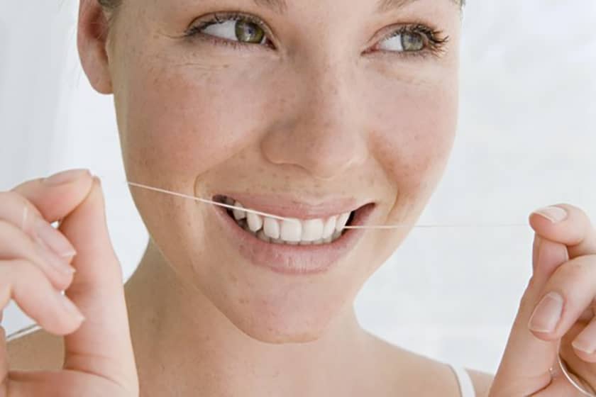 - después de comer, enjuáguese la boca con agua o una solución especial y limpie suavemente los espacios interdentales.