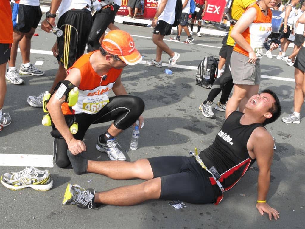 Para evitar calambres en competición, incluye en tu plan entrenar cuando estés cansado. Por ejemplo, correr con músculos cansados después de un entrenamiento de fuerza. Cuanto más fuertes sean los músculos, menor será la probabilidad de calambres, por lo que el entrenamiento de fuerza en el gimnasio y las aceleraciones repetidas cuesta arriba son importantes en la preparación.