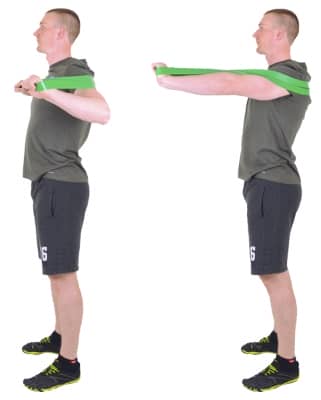 El ejercicio «Mariposa» para el desarrollo de los músculos pectorales se puede realizar con bandas elásticas largas.
