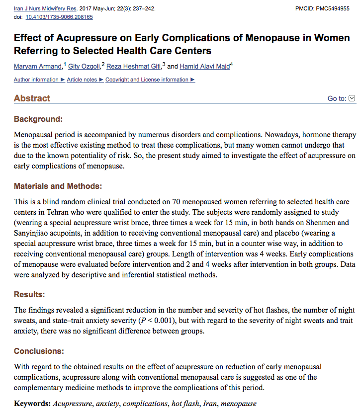 La acupresión o digitopuntura puede aliviar los síntomas iniciales de la menopausia (sudores nocturnos, ansiedad, etc):