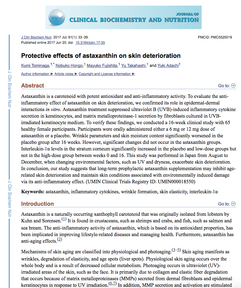 El potente efecto de la astaxantina (un potente carotenoide antiinflamatorio y antioxidante) sobre el deterioro de la piel: