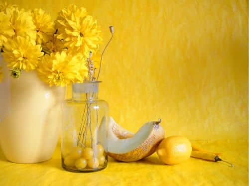 El amarillo activa los centros motores, limpia los intestinos, el hígado, la piel, tiene un efecto laxante y colerético. El color es favorable en el tratamiento de la diabetes mellitus, la disfunción de la vesícula biliar, la alteración del sistema digestivo, el hígado y los intestinos. La cromoterapia se recomienda para problemas de visión.