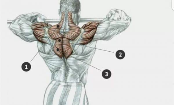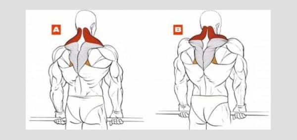 - La parte media del trapecio se acentúa con la ayuda de varios ejercicios de tracción, sin embargo, esta parte del músculo siempre trabaja cuando se entrena la espalda.