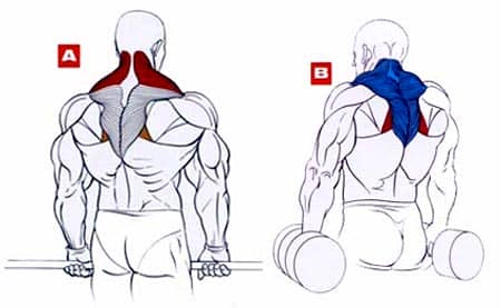 El ejercicio básico, que desarrolla el grosor de la parte superior de los músculos trapecios, es fundamental y más popular entre los atletas en formación.