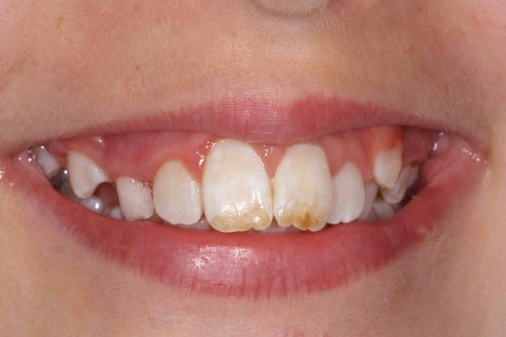 La fluorosis es una enfermedad sistémica causada por la intoxicación por fluoruro. Si usa esta sustancia en altas concentraciones, entonces son los dientes los que sufren primero. Bajo la influencia del flúor, el esmalte se vuelve más resistente a la caries, pero al mismo tiempo se oscurece y se tiñe. Si no comienza un tratamiento dental pagado o gratuito, el esmalte y la dentina comenzarán a colapsar.