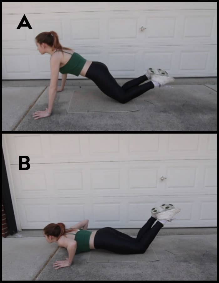 - Mantén la postura durante 20 segundos, luego baja y vuelve a la posición inicial.