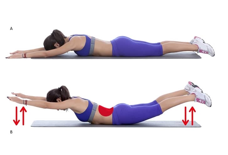 ¡Superman es uno de los ejercicios de espalda más efectivos y populares! Funciona muy bien, estabilizando todos los músculos.