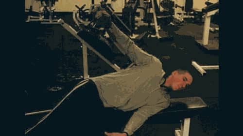 nota _ Este ejercicio debe realizarse inmediatamente después de la última serie de la prensa cubana. Descanse 60 segundos después de la serie y luego pase al siguiente ejercicio: la superserie . - Abducción lateral de mancuernas hasta 45° .
