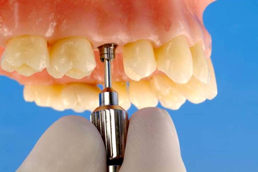 Cuando se extraen los dientes y quedan agujeros en su lugar, el médico procede a instalar los implantes metálicos. Los tuerce en la dirección y ubicación correctas, regulando así la ubicación de los dientes futuros. Finalmente, la herida se cierra con material de sutura y preparaciones hemostáticas.