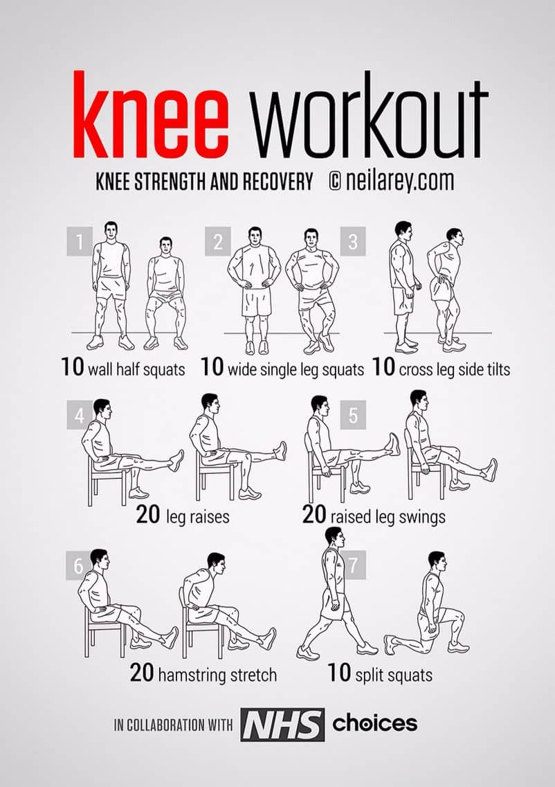 Hemos recopilado los ejercicios más efectivos de varias fuentes. No tienes que incluir todo en tu entrenamiento. Elija de 5 a 8 ejercicios diferentes con los que se sienta cómodo y fortalezca sus rodillas.