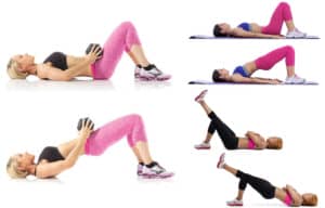 - Puente de glúteos con panqueque en los muslos (3-4 x 12 repeticiones)