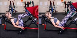 - Prensa de piernas (3 x 15 repeticiones con una postura estrecha, pies altos en la plataforma)