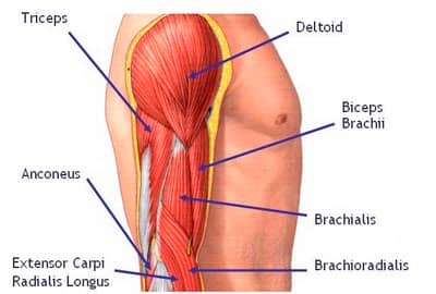 Las tres cabezas juntas forman una forma de herradura que se puede ver en el tríceps.