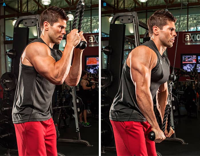 La cabeza del medio se activa cuando los brazos se colocan a lo largo del cuerpo y con un agarre inverso.