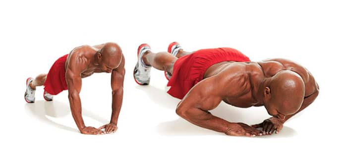 Las inmersiones son una prueba de que este no es el caso (por supuesto, puedes desafiarte a ti mismo y usar pesas en las piernas o un chaleco con peso). Lo mejor es hacer flexiones para que esté completamente fuera del suelo. Asegúrate de que tu torso permanezca perfectamente recto mientras te mueves hacia abajo, cuando tus codos estén doblados a 90 grados, haz una pausa para maximizar el estiramiento y regresa a la posición inicial. Si está haciendo el ejercicio en casa y no tiene acceso a barras completas, use una mesa de café mientras estira las piernas.