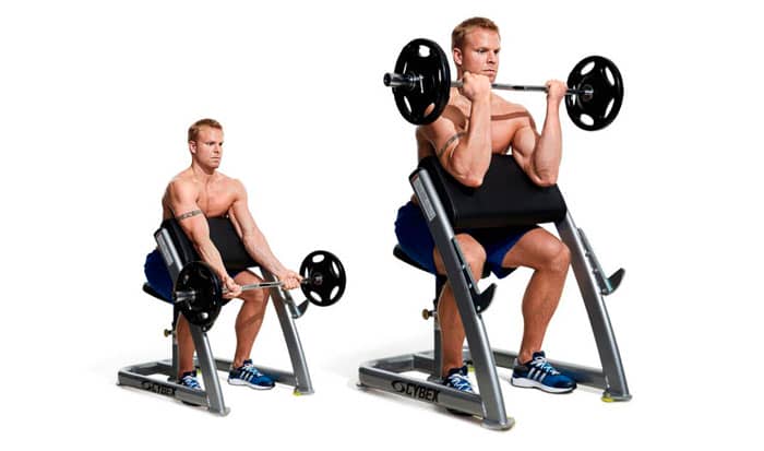 - Curl de bíceps con EZ Barbell en Scott Bench