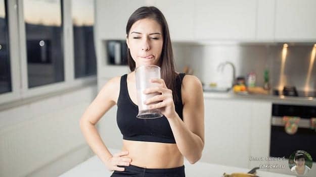 Dado que el cóctel es una bebida, se puede tomar antes y durante el entrenamiento. Esto no sobrecargará el estómago y proporcionará las grasas, los carbohidratos y las vitaminas necesarios. Se aconseja utilizar un batido de proteínas como este: