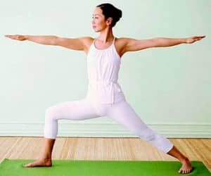 - Extiende los brazos a los lados y luego inclínate sobre la pierna derecha.