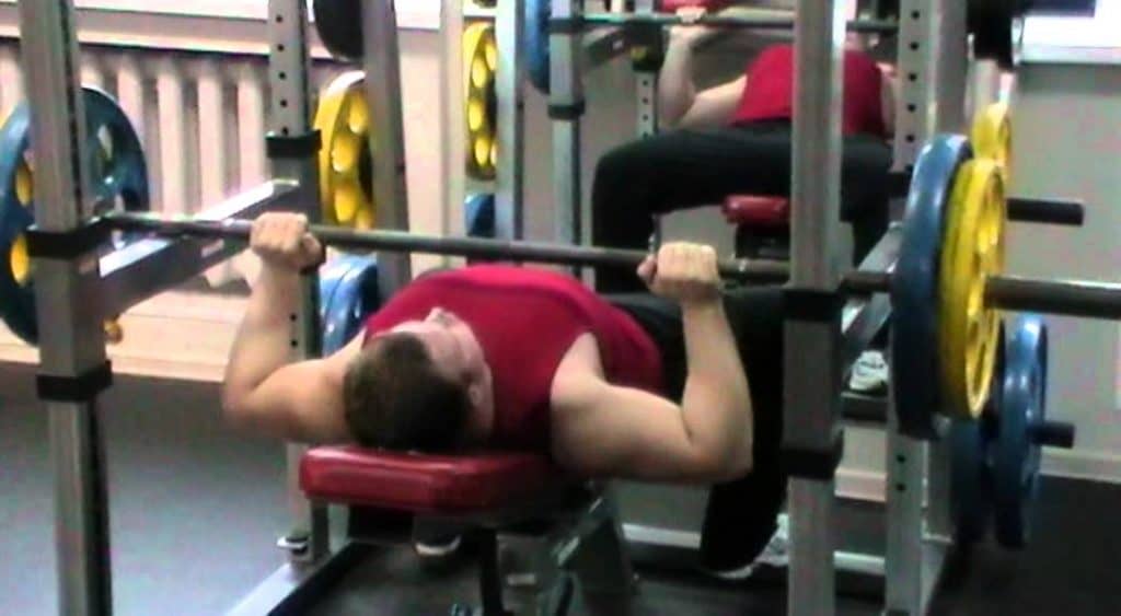 Simplemente acuéstese en el banco, apoye firmemente los pies en el suelo para mantener el equilibrio, tome la barra con un agarre medio o ancho. Realiza flexión y extensión de los brazos hasta que la barra toque el pecho.