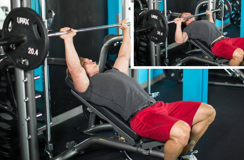 Por regla general, el press de banca en la máquina Smith se realiza en un banco inclinado.