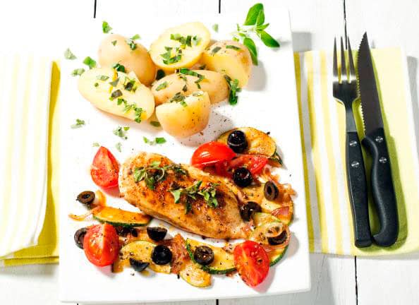 85 g de filete cocido contienen solo 142 calorías y 3 gramos de grasa, 26 gramos de proteína, más de la mitad de la cantidad diaria recomendada. Además, el pollo contiene menos de medio gramo de grasas saturadas por ración (lo que reducirá el riesgo de infartos) y vitamina B, que ayuda al metabolismo y proporciona energía.