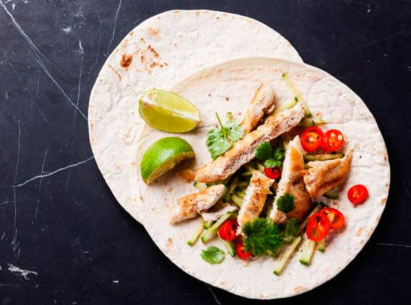 La pechuga de pollo no es solo para la cena. Llévate un pollo para almorzar y te proporcionarás un subidón de energía para toda la jornada laboral. Corte unas rebanadas del pollo sobrante de la cena y envuélvalas en pan de pita con salsa, queso y sus vegetales favoritos, y pruebe la receta de pita de pollo a la parrilla.