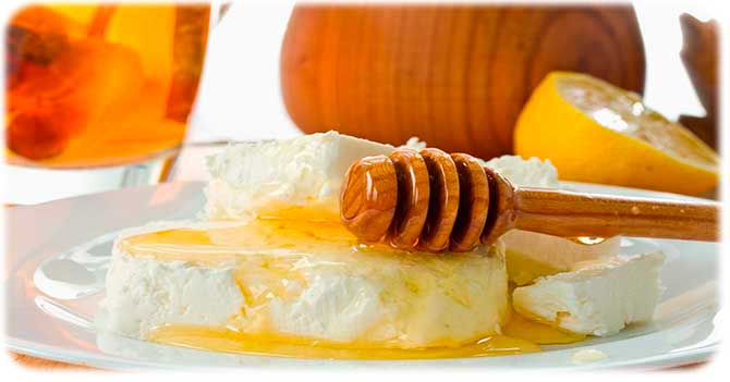 Con miel. El requesón y la miel son buenos porque aportan al organismo una cantidad infinita de vitaminas, microelementos y macroelementos y ayudan al funcionamiento del sistema inmunológico.