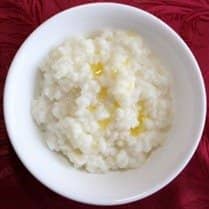 Gachas de arroz . Cuando el cuerpo no tolera las proteínas, esta papilla será útil. Esta papilla contiene vitaminas del grupo B, y además es la que menos calorías tiene entre otros cereales, por lo que es la más adecuada para una dieta. Las gachas de arroz tienen mucho almidón y no contienen gluten. Contiene una gran cantidad de carbohidratos complejos que apoyarán la carga de energía en el cuerpo durante todo el día.